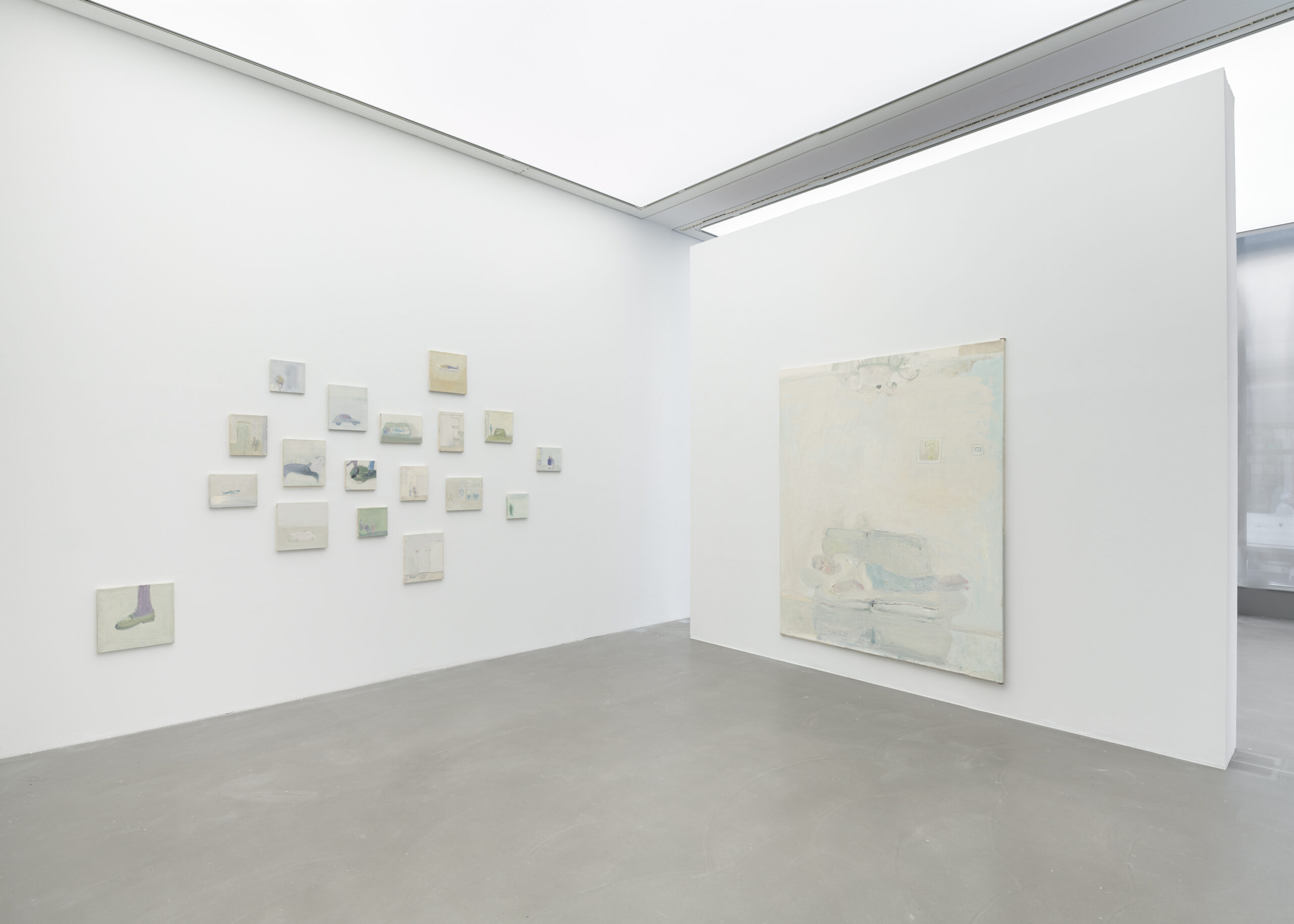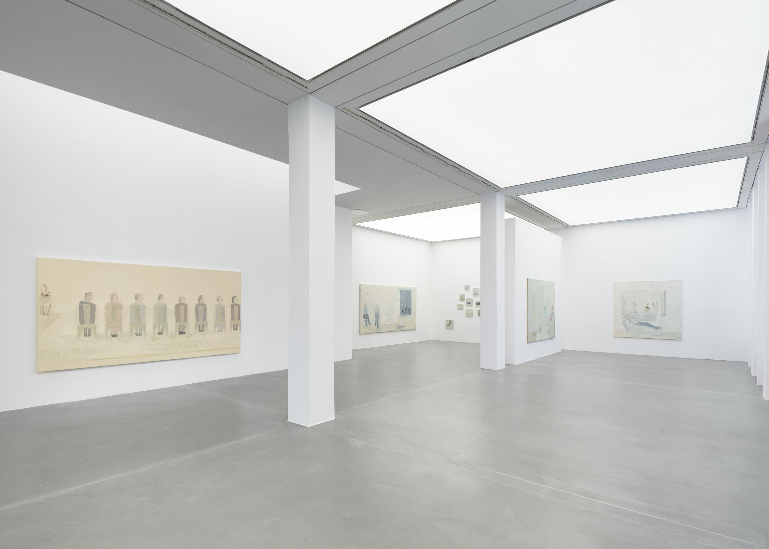 His painterly practice evokes feelings of uneasy domesticity and the precarious relationship that his figures have to their surroundings. Daushvili employs an eerie sense of place across his canvasses often painted through the oblique light of his home and studio. Whilst the viewer may form an emotive attachment with the figures that inhabit Daushvili’s universe, he, in turn, pays them little attention. Often the unwitting sitter, or parts of them, are used as mere objects, sometimes remaining unchanged, but frequently reworked and over-painted depending on his changing relationship to the sitter. This relationship also applies to his interiors, which are also cannibalised across several works through his ongoing painting sequences. Daushvili’s pictures are often subjected to ruthless reworking, creating surfaces held in suspense.